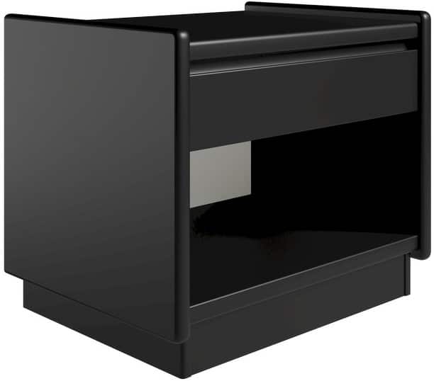 Krone 50 cm bredt sort lakeret sengebord med 1 skuffe og 1 rum – Dansk produceret. 47 cm dybde Sokkel