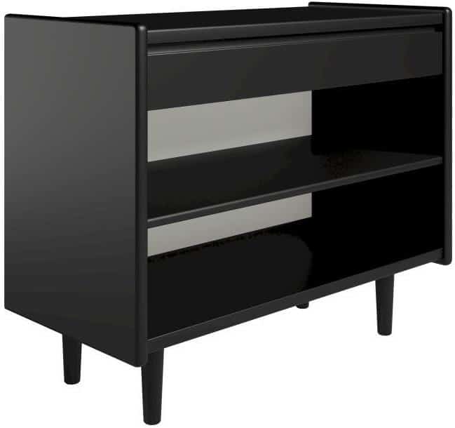 Krone 80 cm bredt sengebord sort lakeret med 1 hylde og 1 skuffe – Dansk produceret. 47 cm dybde Træben