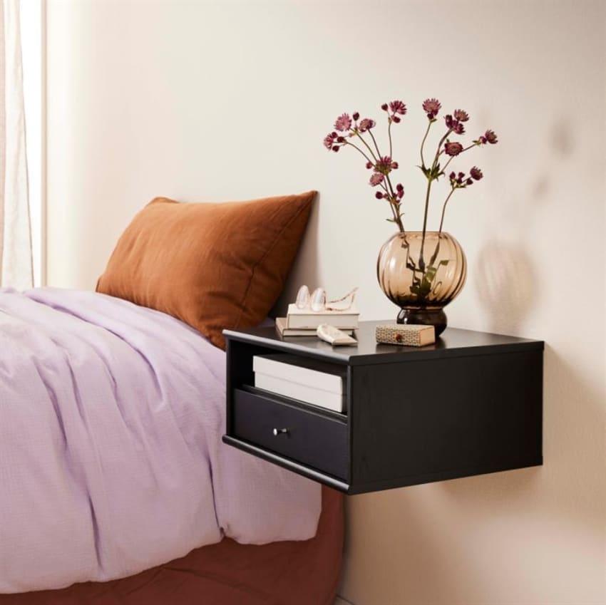 Mistral sengebord m. skuffe og hylde | Sortbejdset